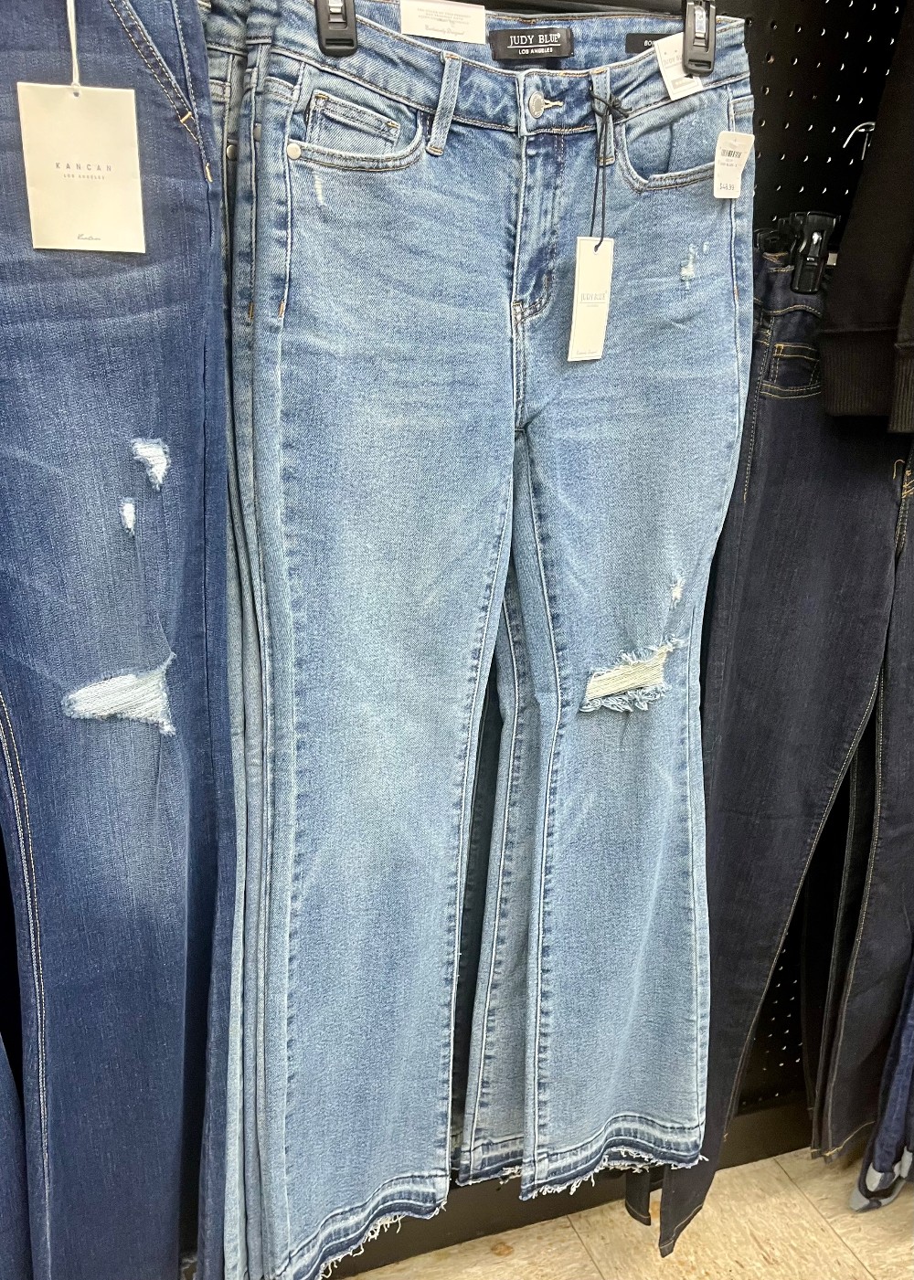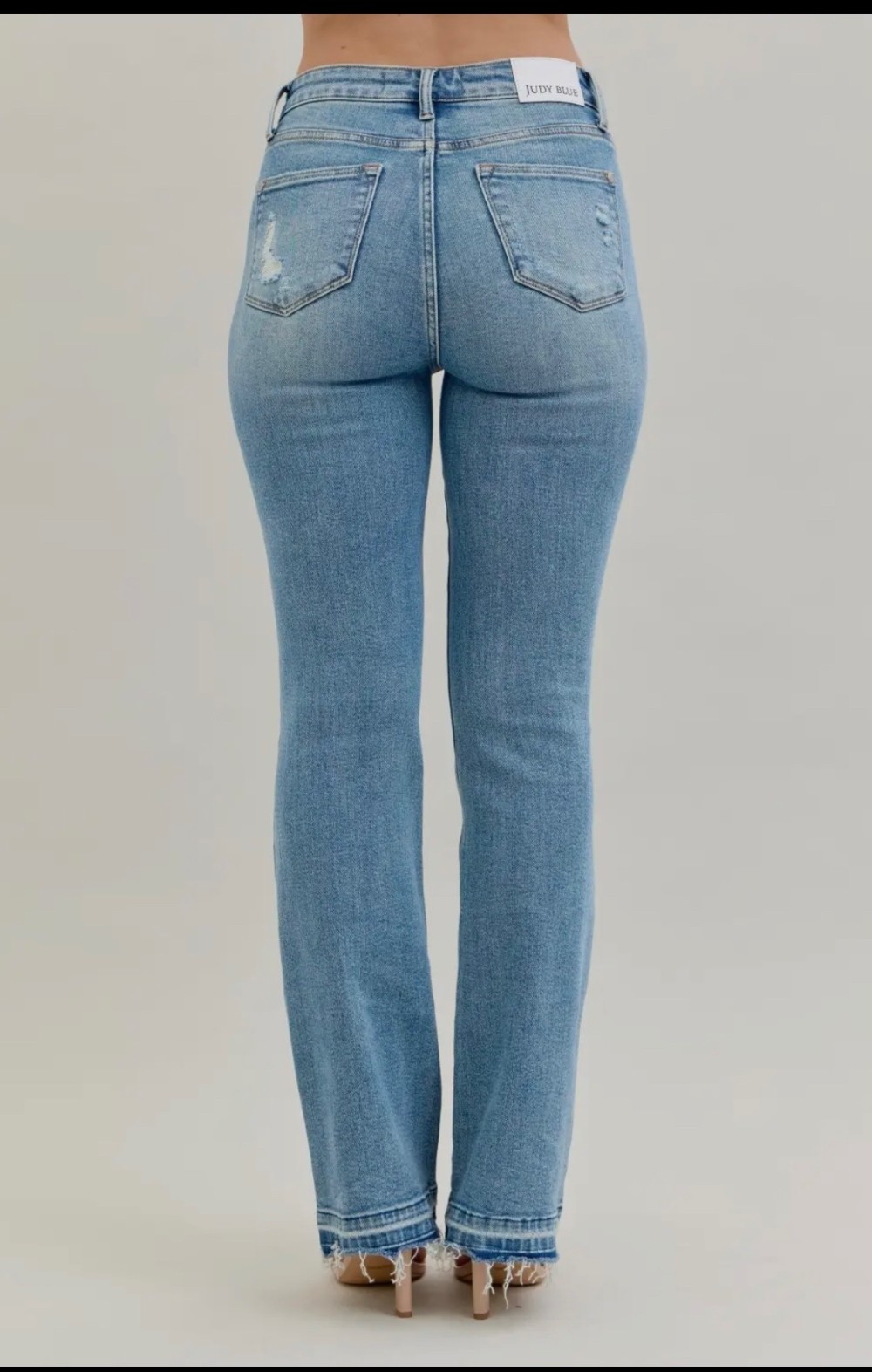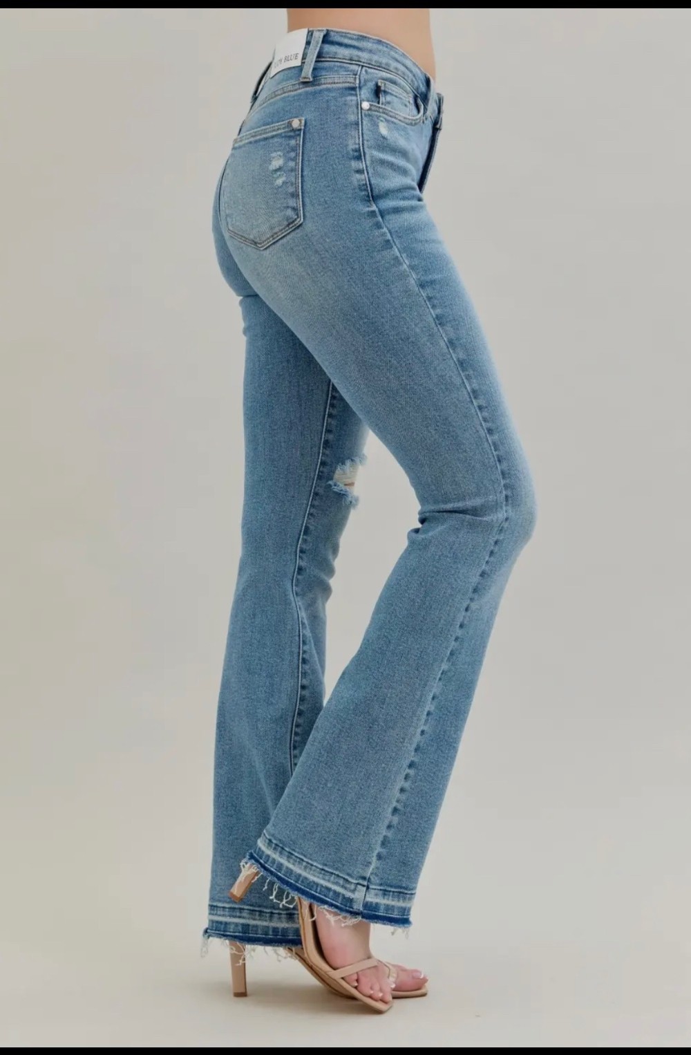 JUDY BLUE JEANS - BOOTCUT - SLIM - MEDIUM DENIM MR DESTROY & RELEASED HEM - SLIM BOOTCUT SHIPPING IS $7 TO MOST AREAS